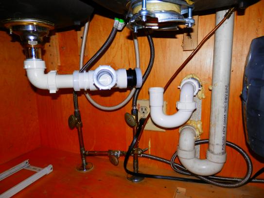 Snappy trap 1 1 2 drain kit for double kitchen sinks this is the best thing we have ever installed in our 2007 tiffin allegro bus. According to us standards each sink should have its own p trap therefore we suggest installing two universal drain kit for bathroom sinks model dk105 so that each sink has its own connection. The flexible pipe hose has a smooth interior wall. We do not recommend using snappytrap 1 1 2 in.